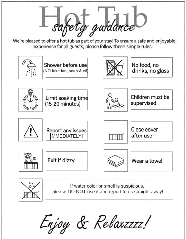 To ensure a safe and enjoyable experience for all guests, please adhere to the following rules as part of our terms and conditions. If these rules are not followed, the water quality may be affected, which is the sole responsibility of the guests.